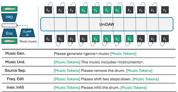 To make musical responses coherent and flexible, we are training a unified text-music model that can generate and transform musical material in practical ways, including accompaniment, source separation, instrument infill, key change, and filtering. This model is fine-tuned on interleaved text-music data and requires multi-machine, multi-GPU optimization, which is why we rely on Marlowe for scalable training runs.