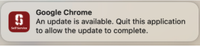 Does this have to do with macOS application patching?No. The above notification comes directly from the Google Chrome application and has the application’s badge or icon. MacOS application patching notifications have the Stanford Jamf Self Service badge, like the one below: