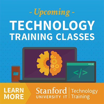 University IT Technology Training classes are only available to Stanford University staff, faculty, or students. A valid SUNet ID is needed in order to enroll in a class.